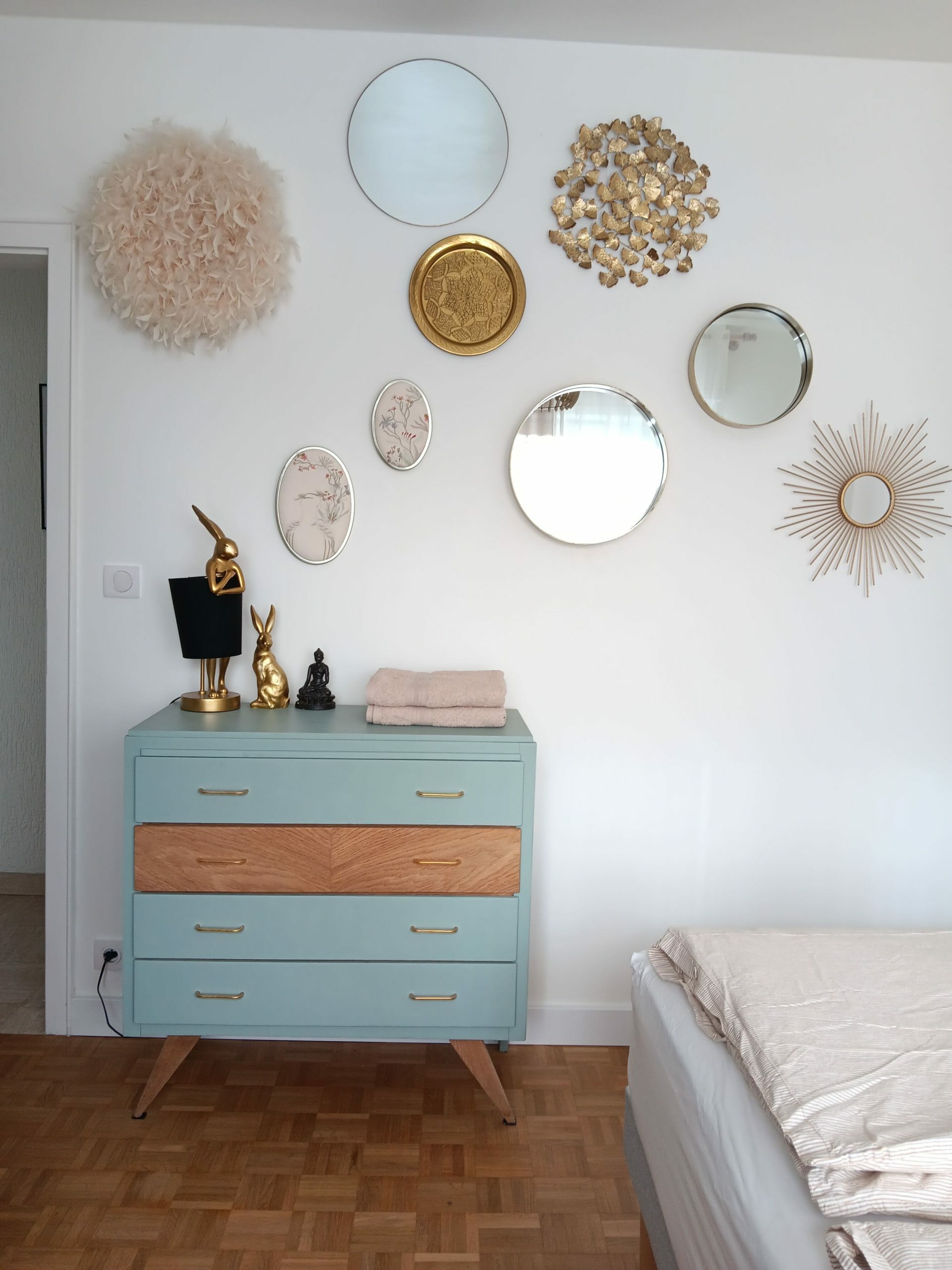 Les matières ont été sélectionnées avec soin pour apporter équilibre et douceur : textiles, éléments décoratifs et touches artistiques viennent enrichir les espaces sans les alourdir.